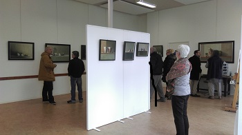 Door de hoge muren en de beschikbaarheid van verplaatsbare wanden is de ruimte bijzonder geschikt. Een ophangsysteem is aanwezig. En door de verplaatsbare wanden is de expositieruimte flexibel in te richten. Je kan beschikken over circa 25 strekkende meter aan expositiewand. Dat betekent in de praktijk dat je, afhankelijk van de afmetingen van je werk, tussen de 30 en 50 schilderijen kan exposeren.